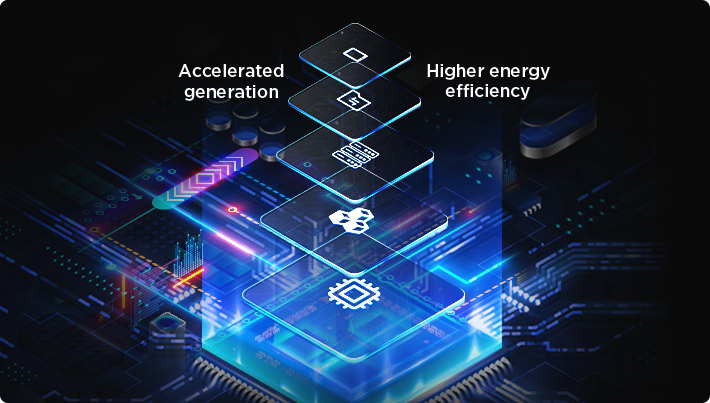 InferEngine leverages heterogeneous optimization, deep model customization, and self-developed fast algorithms to provide a high-performance, energy-efficient large model inference engine for upper-layer applications.