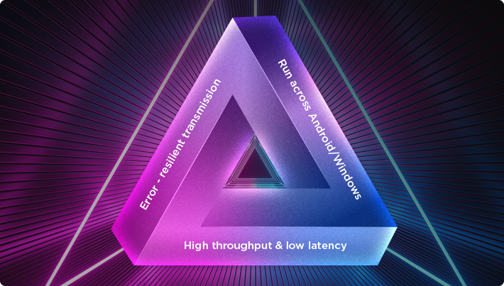 SuperLink is an end-to-end solution for audio-video and large data transfer across devices and operating systems. Upper-layer applications powered by SuperLink deliver exceptional display quality, ultra-low latency, and high network throughput for an unmatched user experience.