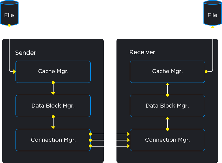 Our proprietary parallel data transfer technology uses multiple threads to transmit data simultaneously to multiple sockets, with each thread independently handling its tasks. This greatly enhances parallel processing efficiency.