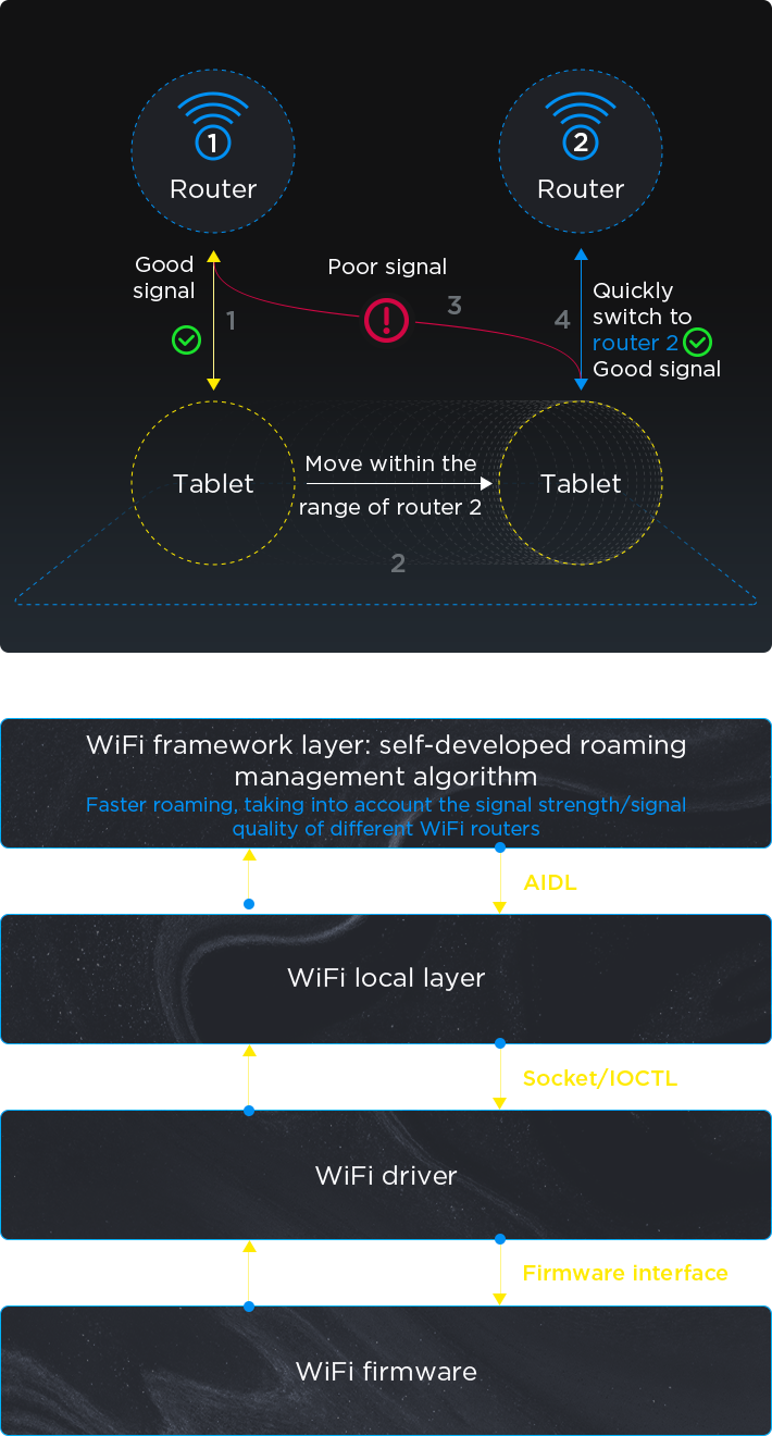Using a self-developed algorithm, the WiFi roaming threshold is dynamically adjusted in real time to provide users with a smooth and uninterrupted network experience in ESS network environments (multiple routers using the same SSID).
