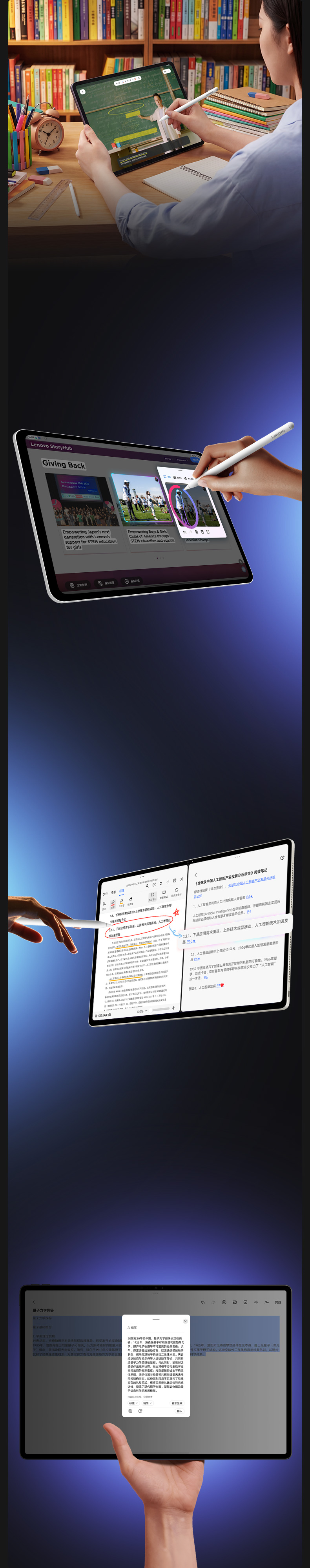 提笔即写,得心应手* 笔写延迟数据来自联想实验室,测试机型为小新平板 Pro GT出厂版本,测试应用为自研便签应用,具体以实际为准。